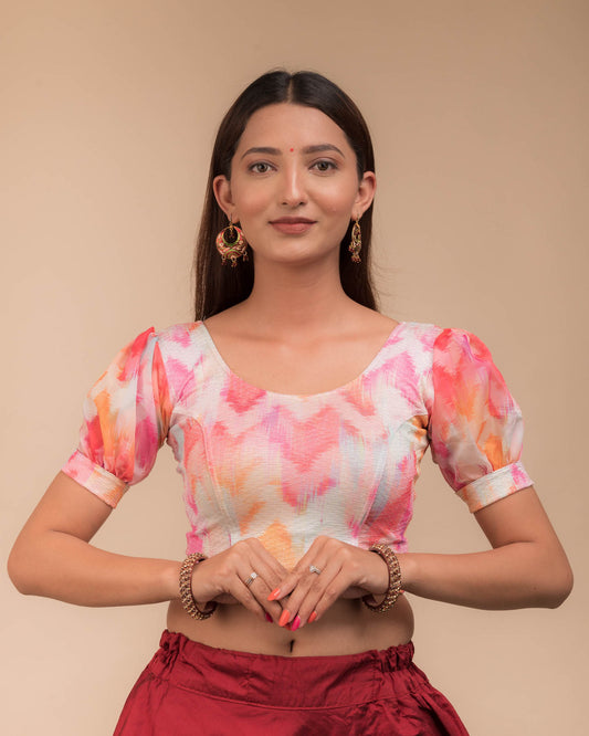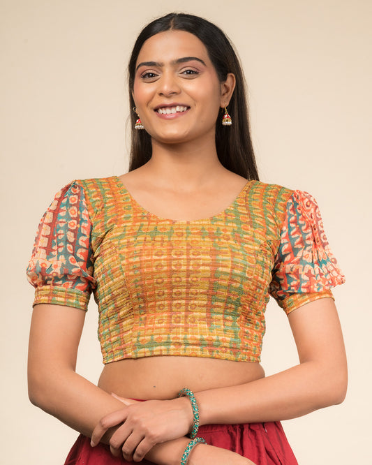 Kohima Multicolor Printed Metallic Puff Blouse | Stretchable Indo Western Fit