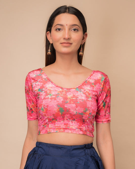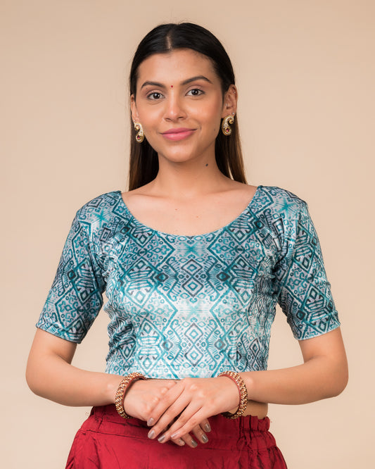 Tijori Digital Print Shimmer Stretchable Slip on Blouse