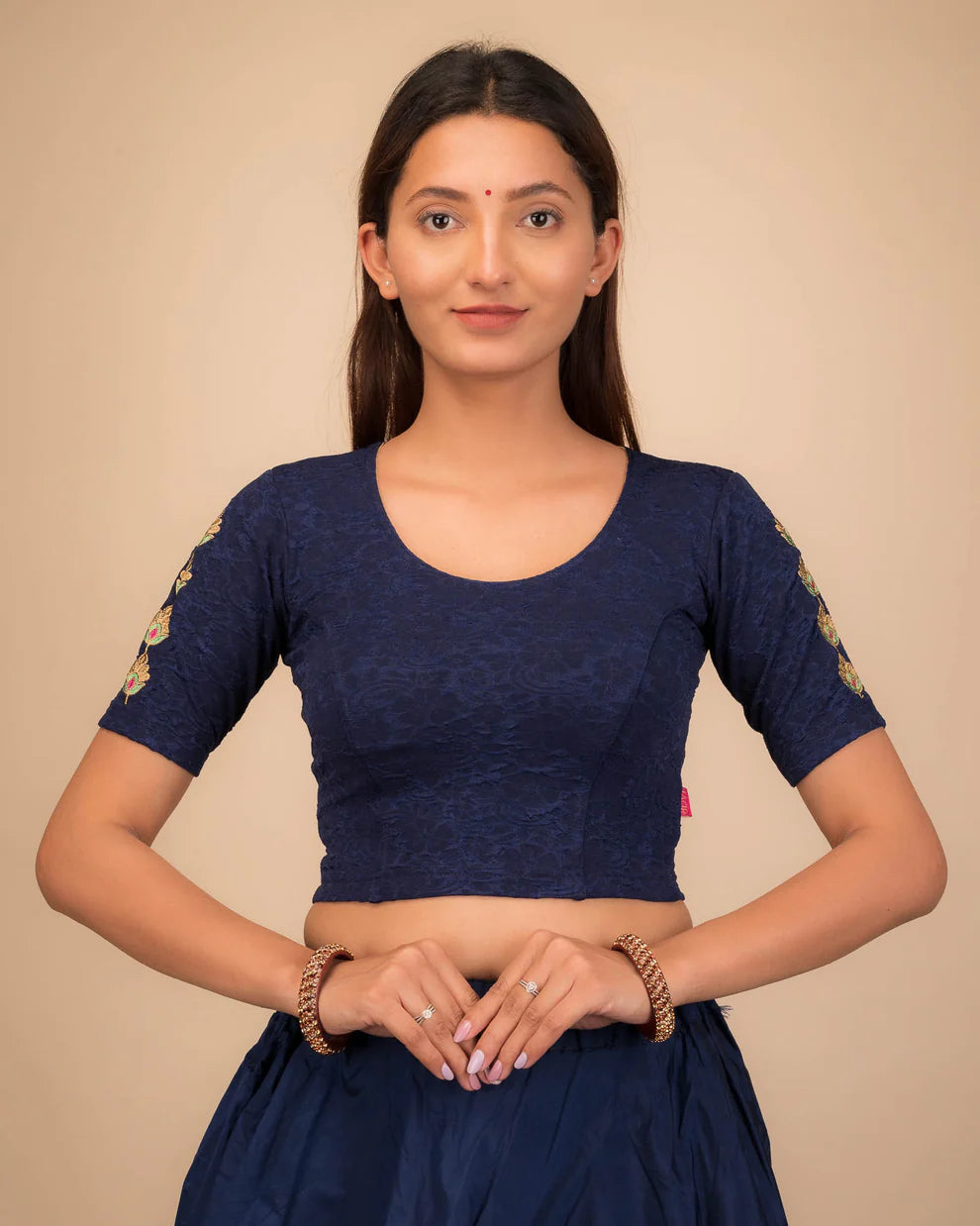 Who says sarees can't be boardroom material? This blouse is crafted with a sleek collar neckline that adds structure and style, perfect for pairing with a contrasting saree. Think solid blouse + printed saree or vice versa.