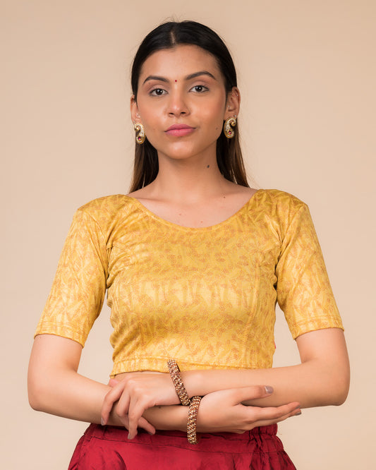 Kashti Gold Floral Block Print Readymade Saree Blouse