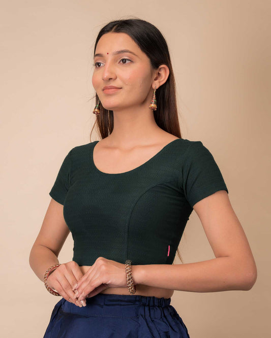 Dobby New Bottle Green Half Sleeve Cotton Jacquard Blouse by Advi