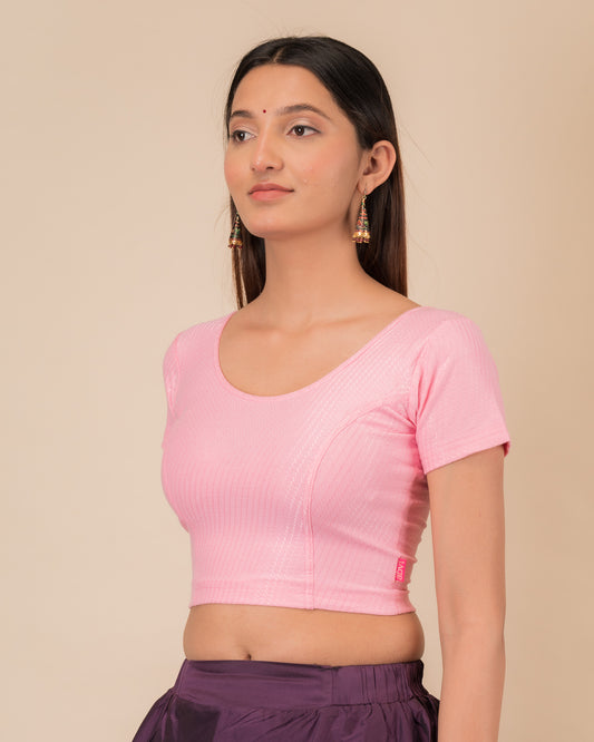 Dobby Baby Pink Cotton Half Sleeve Blouse with Jacquard Texture by Advi