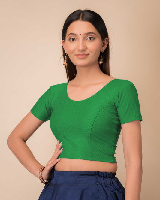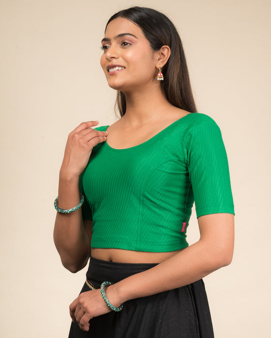 Dobby Rama Green Cotton Elbow Sleeve Slip On Blouse by Advi