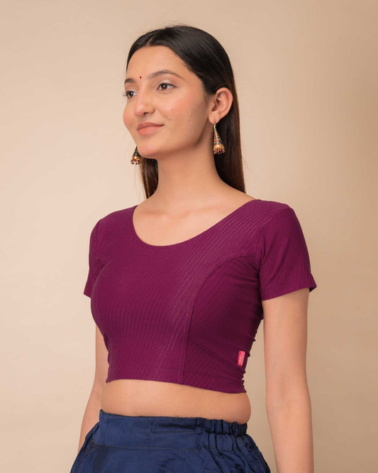 Dobby Wine Cotton Jacquard Textured Half Sleeve Slip On Blouse by Advi