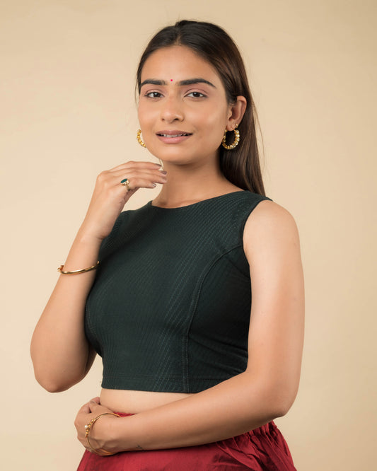 Jyoti New Bottle Green Sleeveless Cotton Blouse with High Neck by Advi