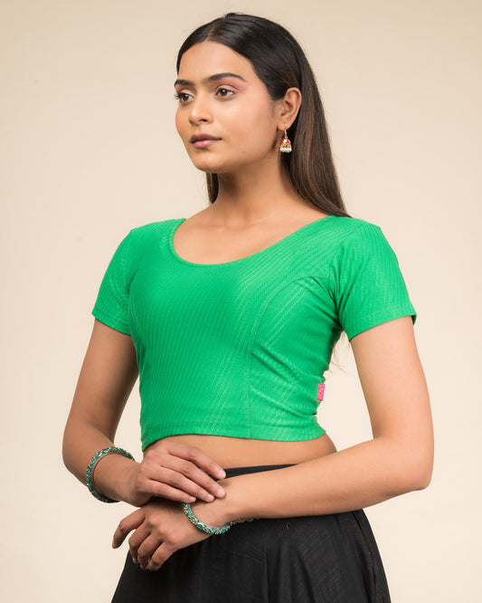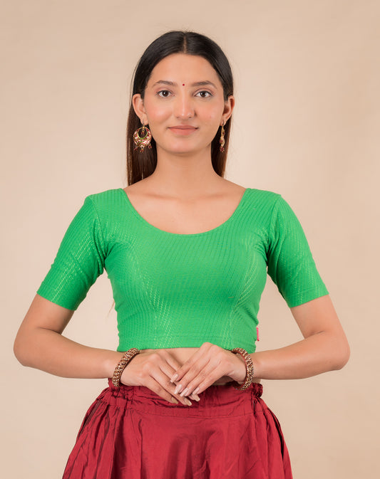 Dobby Green Cotton Half Sleeve Slip On Jacquard Blouse for Daily Use by Advi