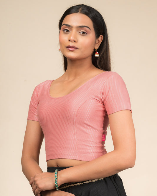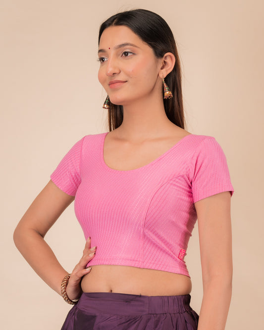 Dobby Pink Cotton Jacquard Half Sleeve Self Design Blouse by Advi