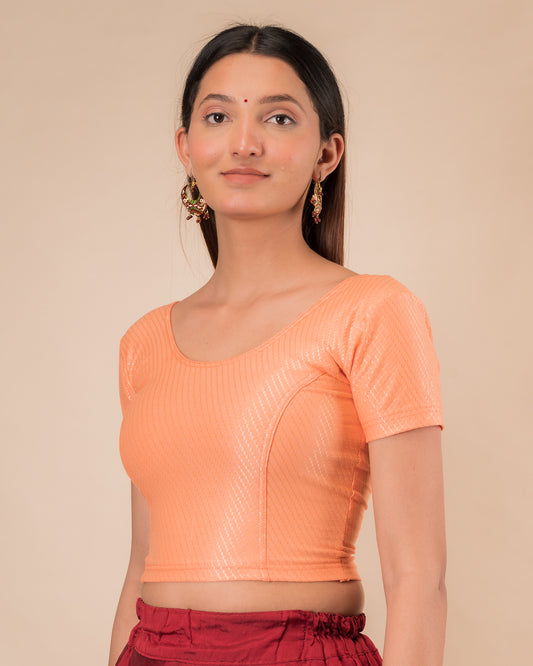 Dobby New Peach Half Sleeve Cotton Jacquard Slip On Blouse by Advi