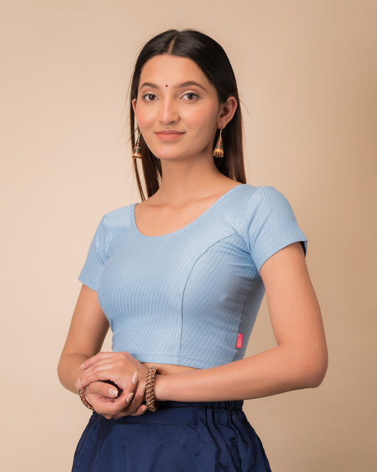 Dobby Sky Blue Self Design Half Sleeve Cotton Slip On Blouse for Everyday by Advi