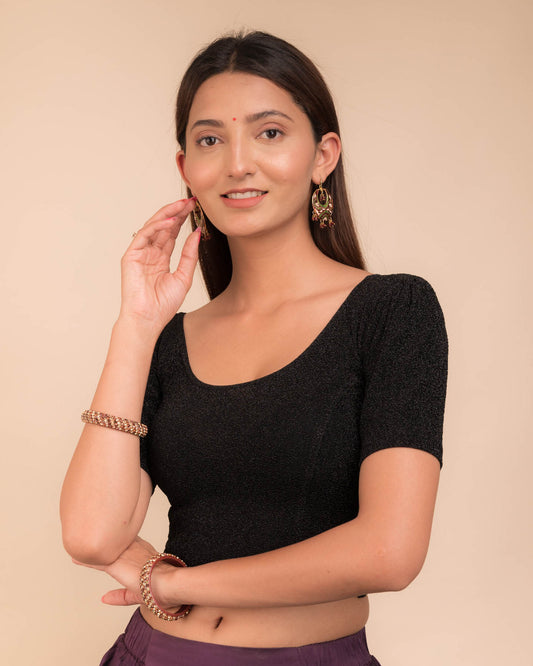 Gauri Rani Puff Sleeve Blouse with Gold Glitter Stretchable Fabric Advi