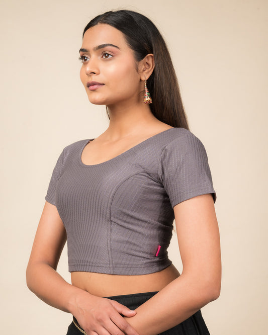 Kashti Grey Jacquard Ready to Wear Stretchable Blouse | No Tailor Needed