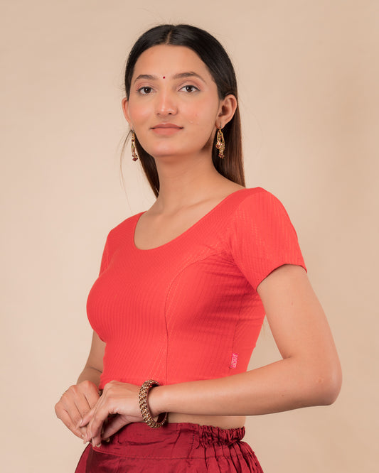 Dobby Tomato Cotton Jacquard Stretchable Half Sleeve Blouse by Advi