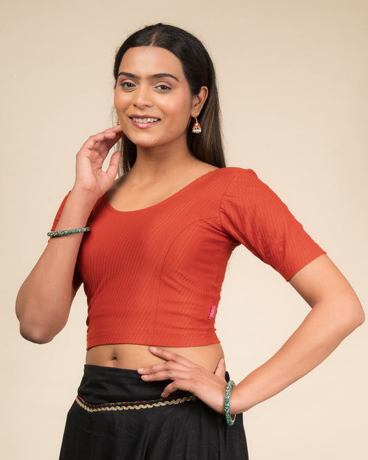 Dobby Rust Cotton Textured Elbow Sleeve Slip On Blouse by Advi