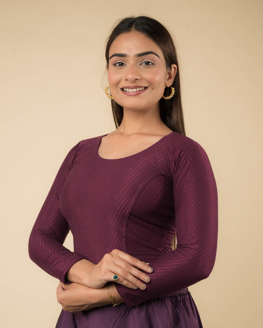 Dobby Purple Self Design Long Sleeve Stretchable Cotton Blouse by Advi