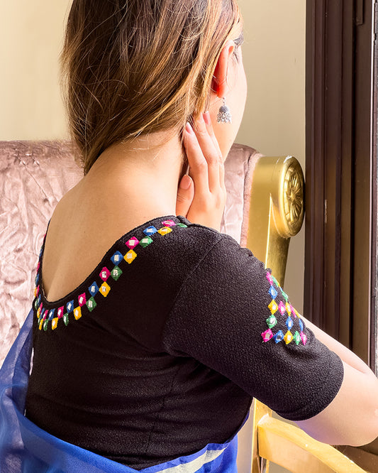 Siddhi Multicolour Mirror Work Black Choli for Navratri | Readymade Blouse