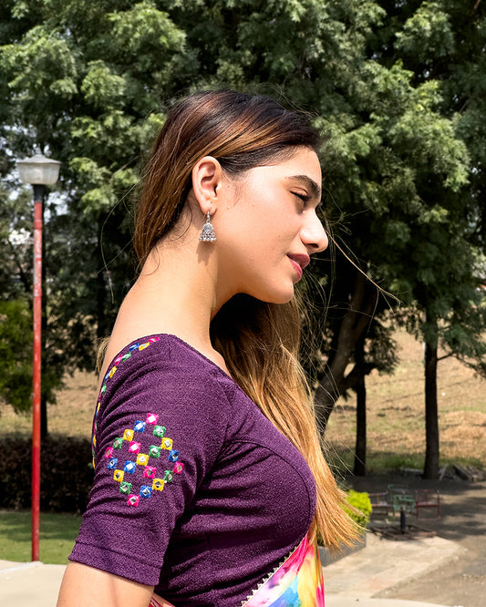 Siddhi Multicolour Mirror Work Purple Choli | Wedding Stretchable Blouse