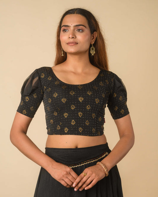 Paavna Black Organza Sleeve Stretchable Saree Blouse Advi