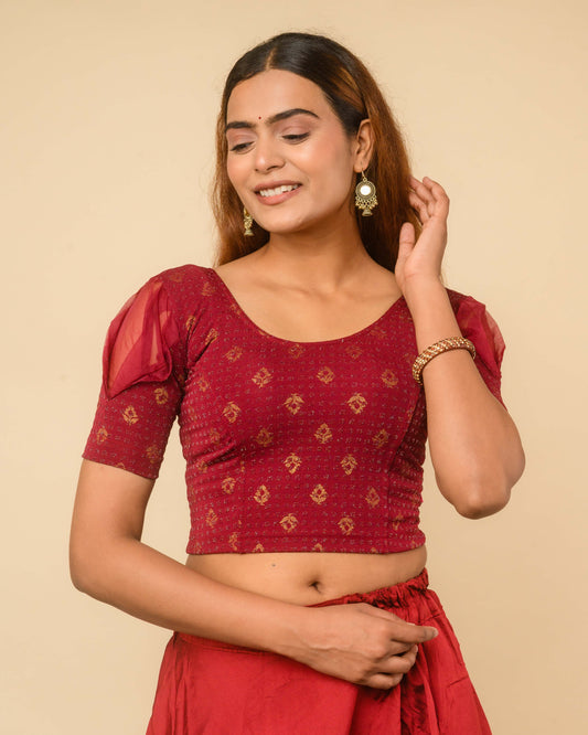 Paavna Maroon Organza Puff Sleeve Stretchable Saree Blouse Advi