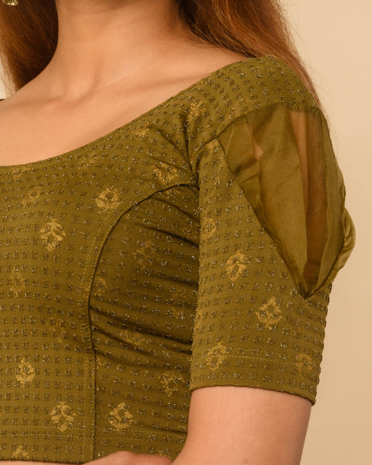Paavna Mehendi Green Organza Puff Sleeve Stretchable Saree Blouse Advi