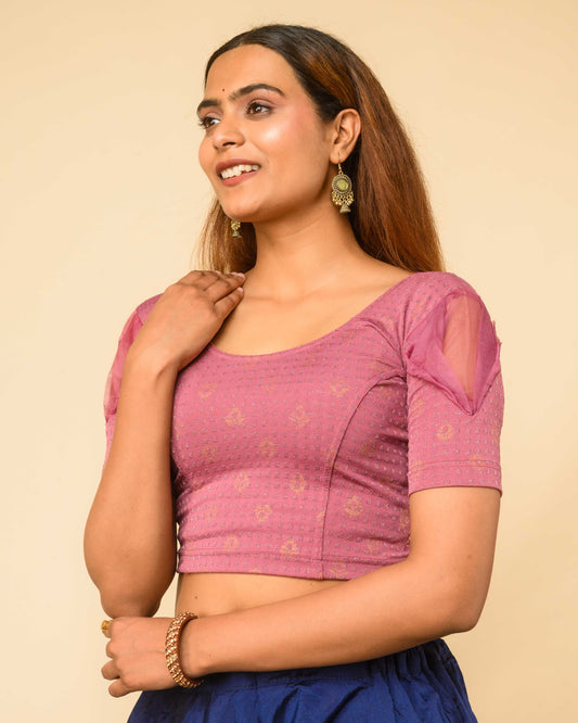 Paavna Rani Jacquard Organza Sleeve Stretchable Saree Blouse Advi