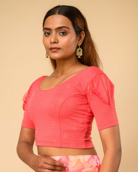 Paavna Onion Pink Organza Puff Sleeve Stretchable Saree Blouse Advi