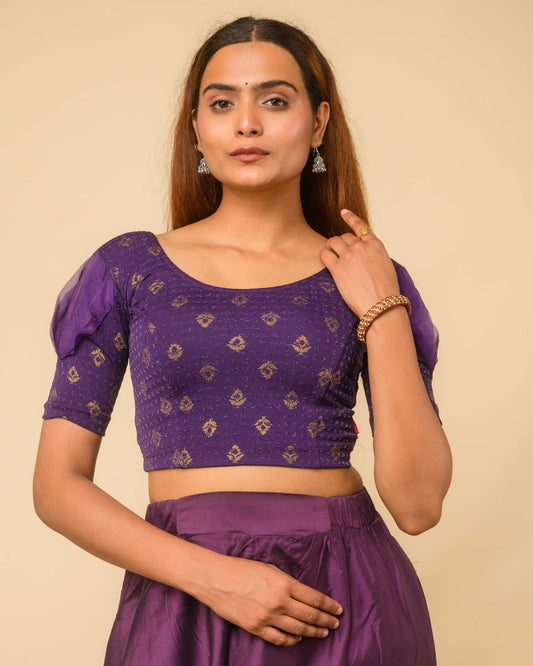 Paavna Purple Organza Puff Sleeve Stretchable Saree Blouse Advi