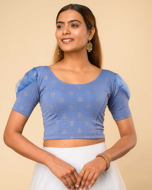 Paavna Steel Blue Organza Sleeve Stretchable Saree Blouse Advi