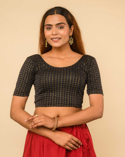 Padmini Black Zari Striped Jacquard Stretchable Saree Blouse Advi