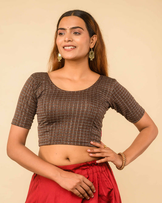 Paavna Mocha Organza Puff Sleeve Stretchable Saree Blouse Advi