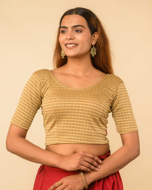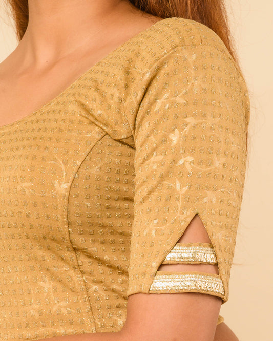 Vaaya Beige Gold Glitter Dobby Jacquard Stretchable Saree Blouse Advi