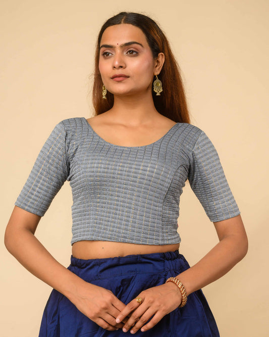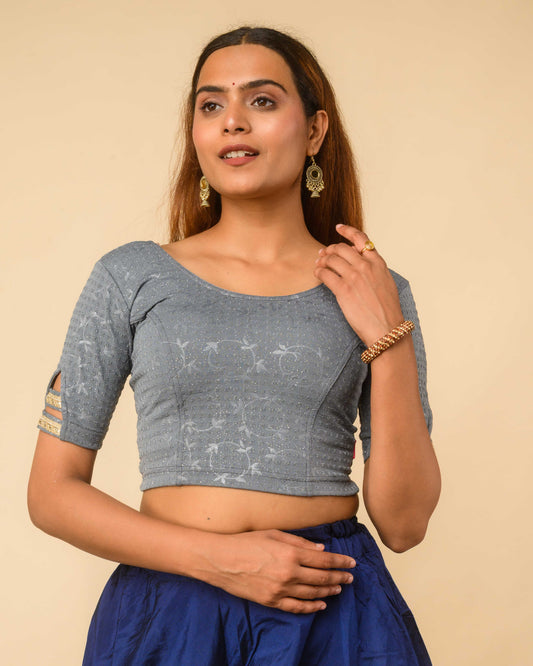 Vaaya Gray Glitter Dobby Jacquard Stretchable Saree Blouse Advi