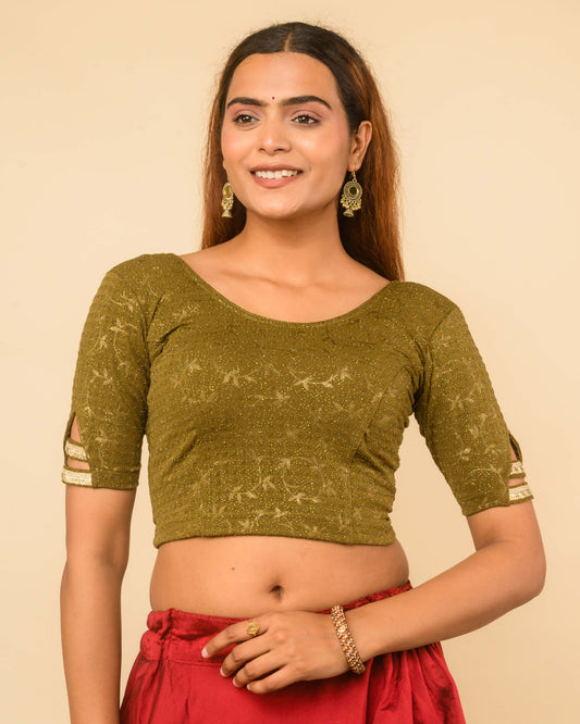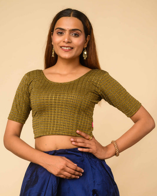 Vaaya Mehendi Green Glitter Dobby Jacquard Stretchable Saree Blouse Advi