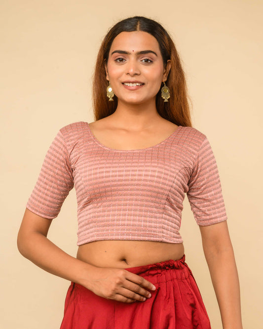 Vaaya Peach Glitter Dobby Jacquard Stretchable Saree Blouse Advi