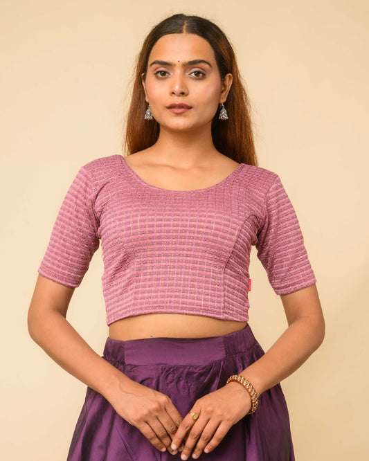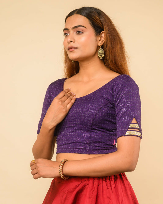 Vaaya Purple Glitter Dobby Jacquard Stretchable Saree Blouse Advi