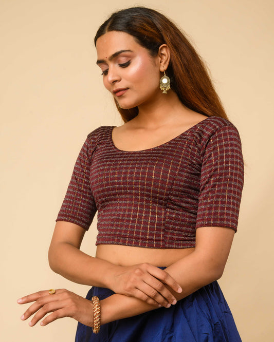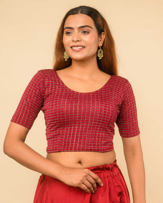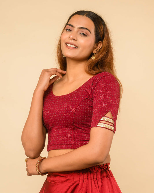 Vaaya Maroon Glitter Dobby Jacquard Stretchable Saree Blouse Advi