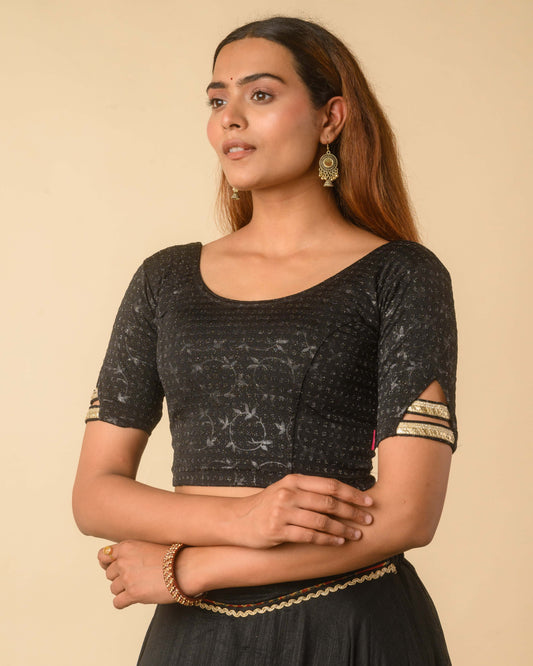 Vaaya Black Glitter Dobby Jacquard Stretchable Saree Blouse Advi