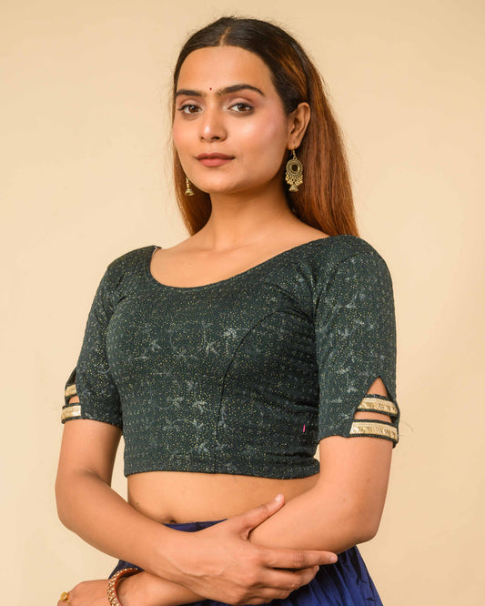 Vaaya Bottle Green Glitter Dobby Jacquard Stretchable Saree Blouse Advi