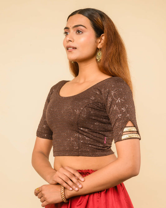 Vaaya Mocha Glitter Dobby Jacquard Stretchable Saree Blouse Advi