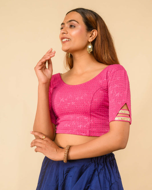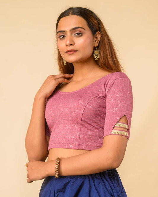 Vaaya Onion Pink Glitter Dobby Jacquard Stretchable Saree Blouse Advi