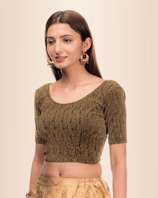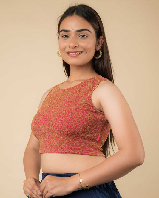 Nakshatra Rose Gold Bling Ready-to-Wear Blouse – Stretchable & Designer Blouse