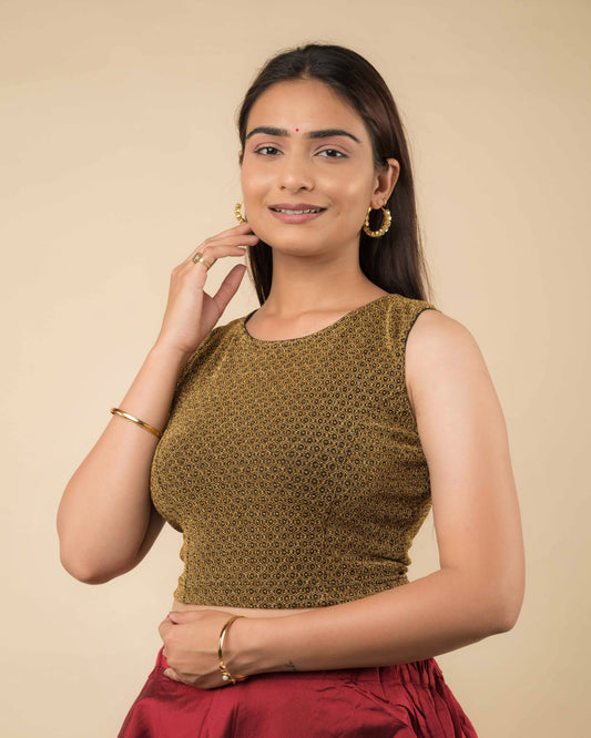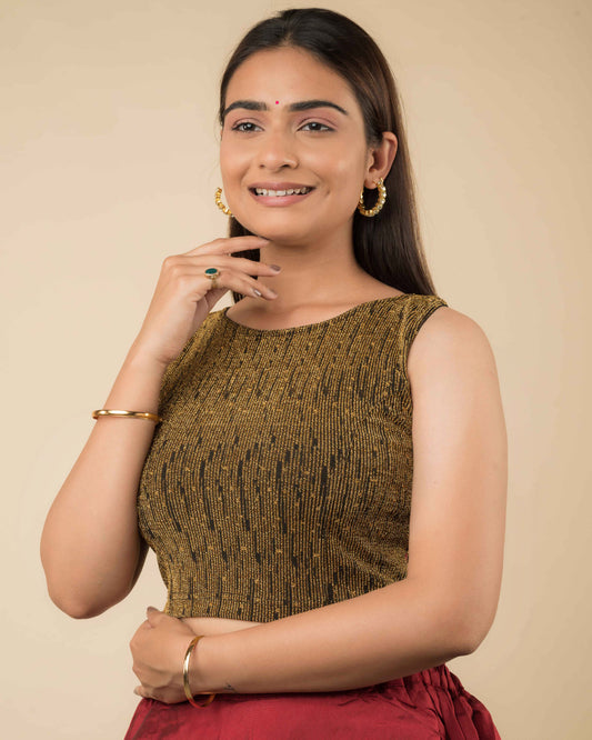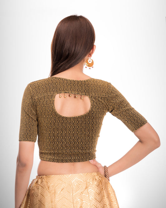 Shimona Black Gold Brocade Zari Round Neck Stretch Blouse by Advi