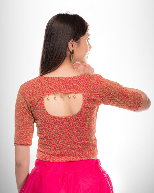 Shimona Red Zari Brocade Banarasi Round Neck Stretch Blouse by Advi