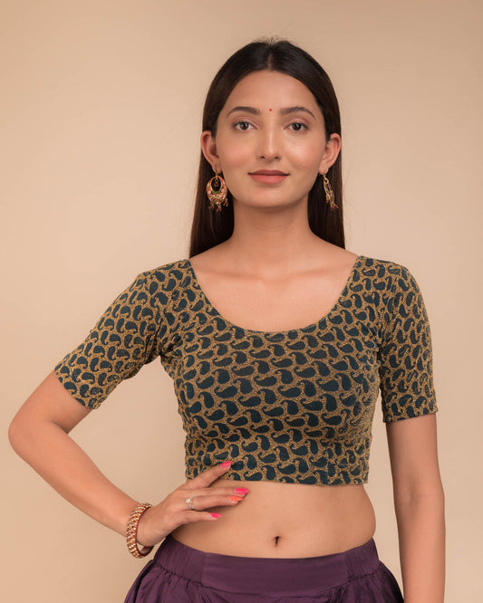 Preet Banarasi Zari Keri Rama Green Readymade Saree Blouse | Stretchable