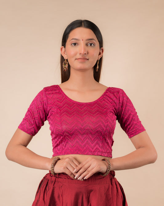 Nandini Melange Zig Zag Maroon Textured Readymade Blouse Everyday Wear Advi