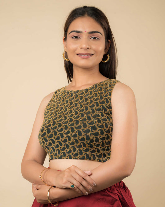 Shimona Bottle Green Zari Brocade Round Neck Stretch Blouse by Advi