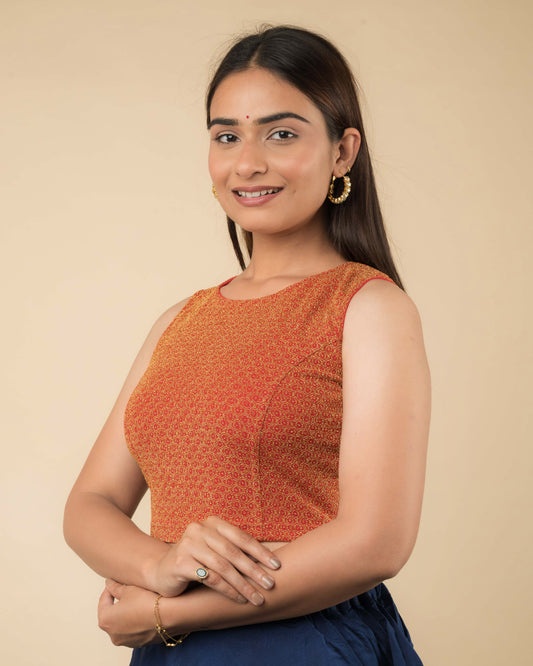 Nandini Geometric Pattern Orange Melange Stretchable Blouse Workwear Advi