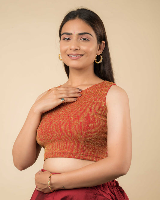 Shimona Red Banarasi Zari Sleeveless Round Neck Stretch Blouse by Advi