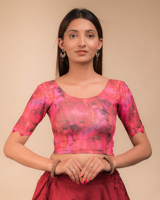 Dhaatu Digital Print With Silk Trims Rani Multicolor Stretchable Blouse | Party Wear