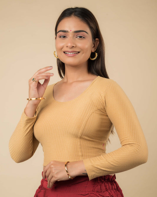 Dobby Gold Cotton Jacquard Long Sleeve Stretchable Saree Blouse by Advi