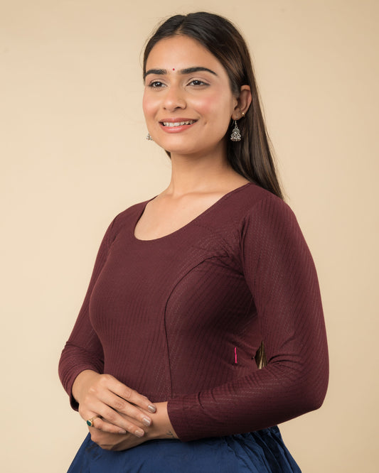 Dobby Wine Cotton Long Sleeve Self Design Slip On Blouse by Advi